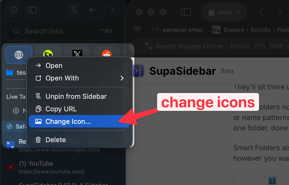 Smart Folders now work with files and folders, not just links. Set up rules based on file type, path, or name patterns, and let your sidebar sort itself. Need to save all your open tabs? One action, one folder, done.
